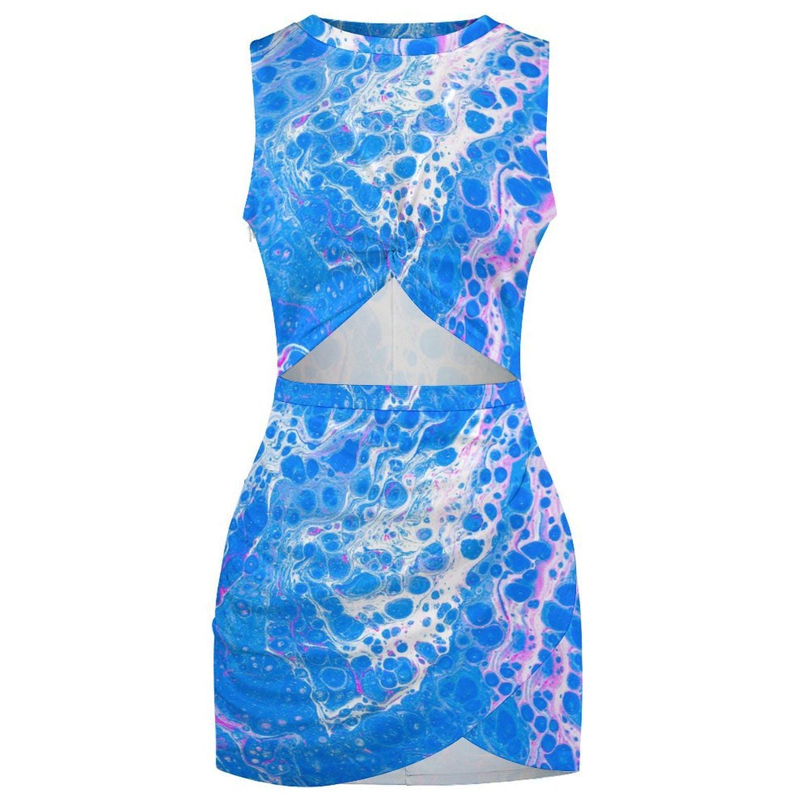 Acrylic Paint Pour Print Cutout Waist Twist Dress - Sleeveless - Artist Fashion - Blue or Purple - Artistic Texture 2026 Trends
