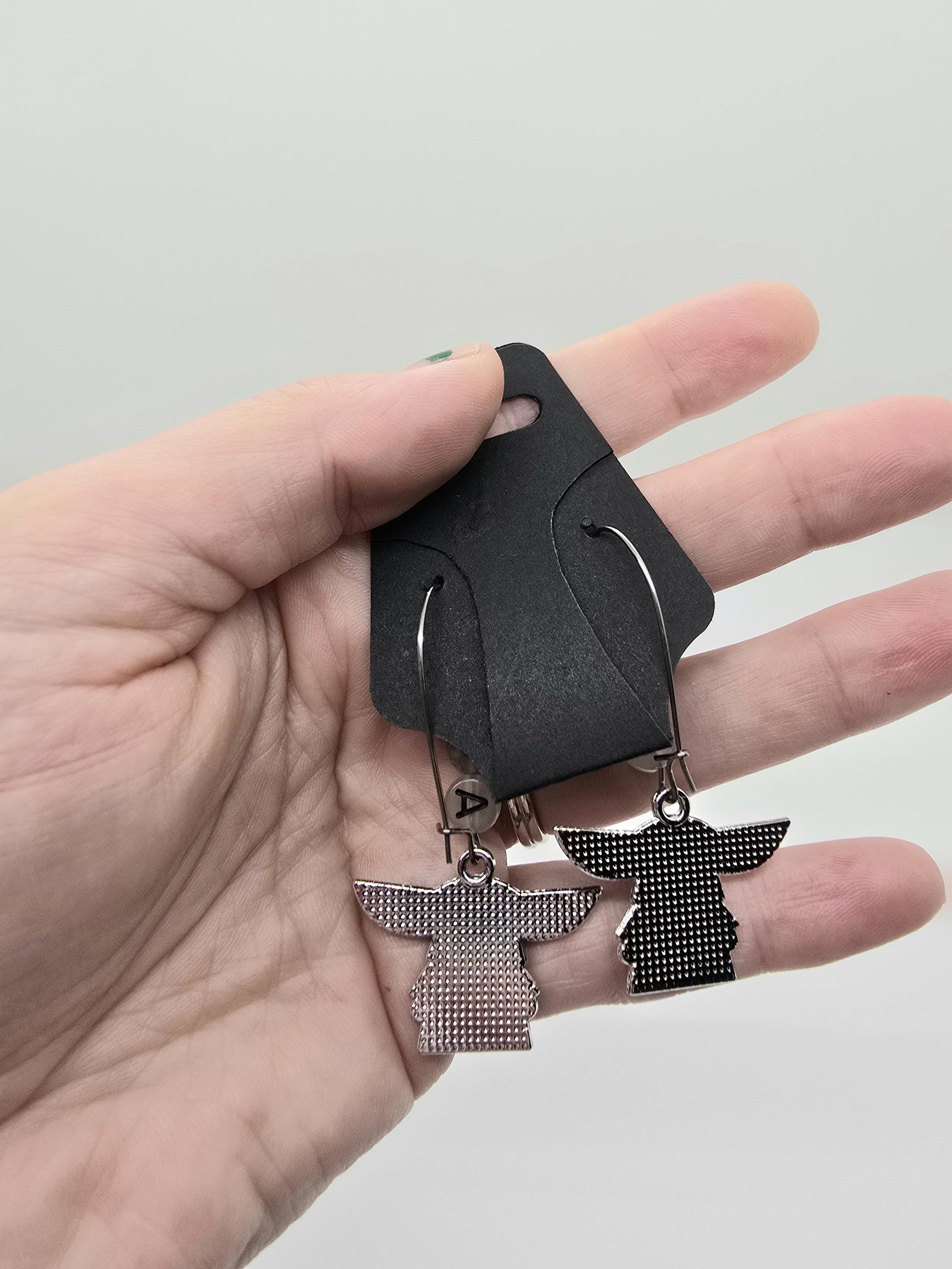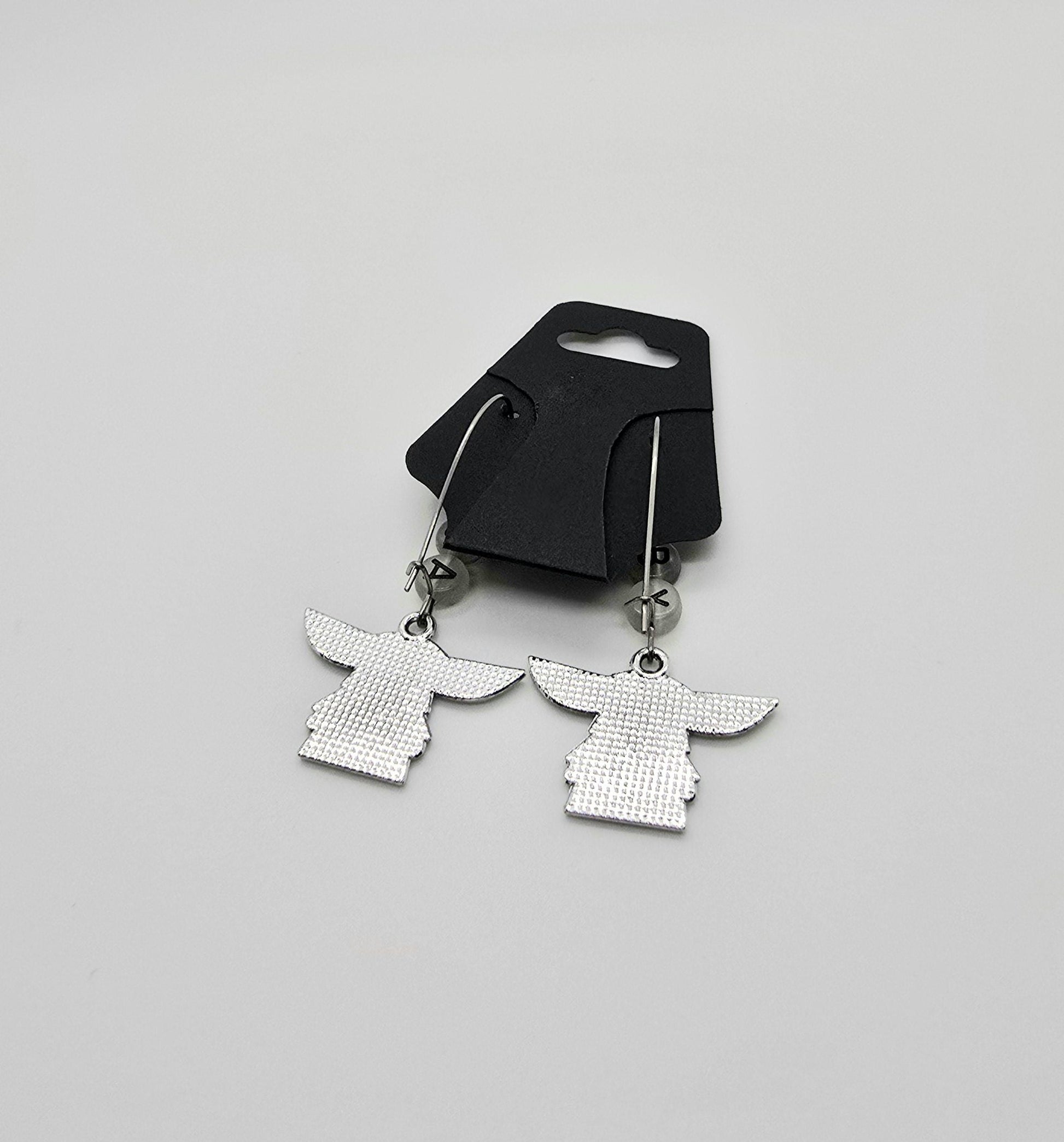 Baby Yoda Glow In The Dark Letter Beads & Enamel Charms on Stainless Steel Earring Hooks - Star Wars Grogu Inspired Jewelry