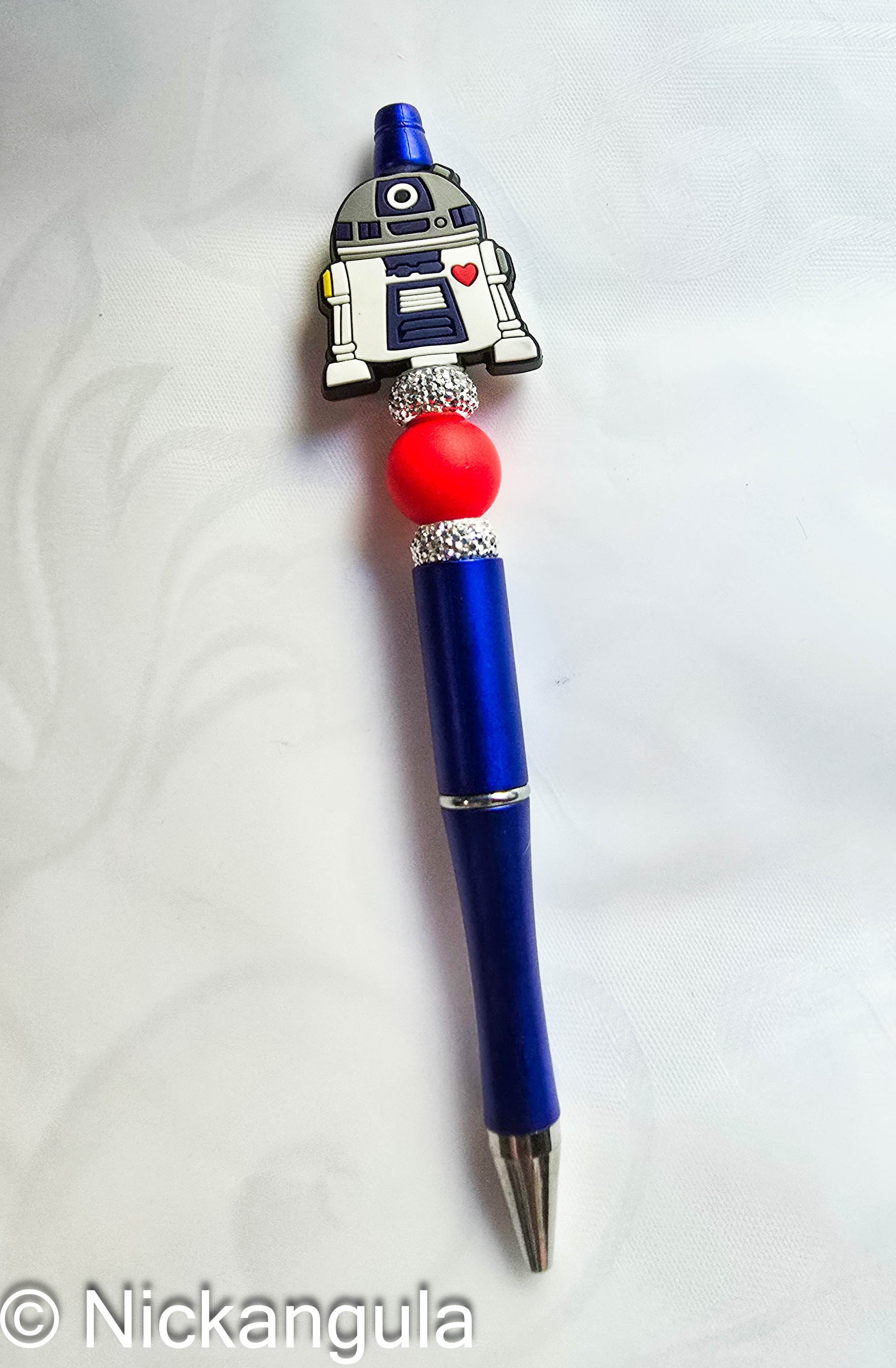 R2-D2 Inspired Beaded Ballpoint Pen - Star Wars Inspired Artoo Detoo Fan Gift - Black Ink - Refillable