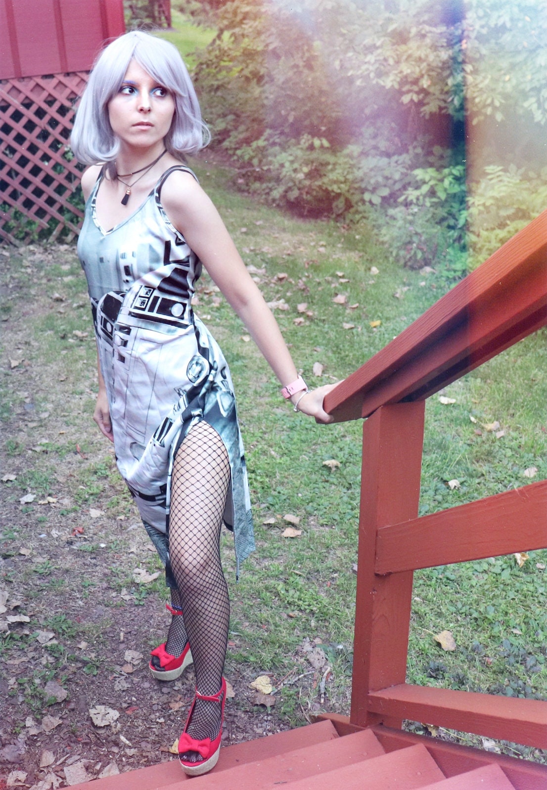 Droid Line R2-D2 & Friends Black and White V-Neck Slip Dress - Star Wars Inspired Women's Fashion - Sleeveless - Spaghetti Strap - Geek Girl