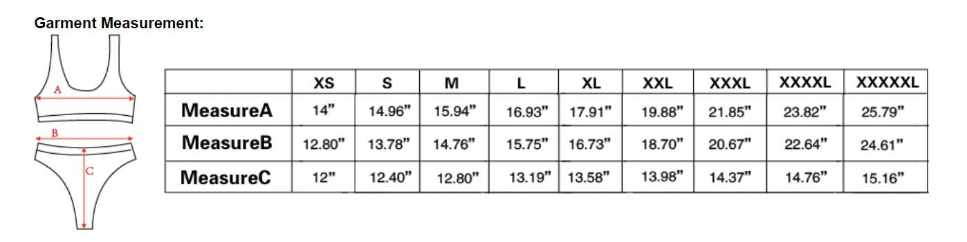 This sport bikini set features a scoop neck, low back, high waist bottoms with high cut legs. • 6.00 Oz. Fabric: 95% polyester, 5% spandex. • Sport top with a scoop neck and low back. • High-waisted bottom with high leg. • Using an advanced heat sublimation technique, will not fade in water. • Swimsuits are padded with an inner lining. • Machine washable, tumble dry low.